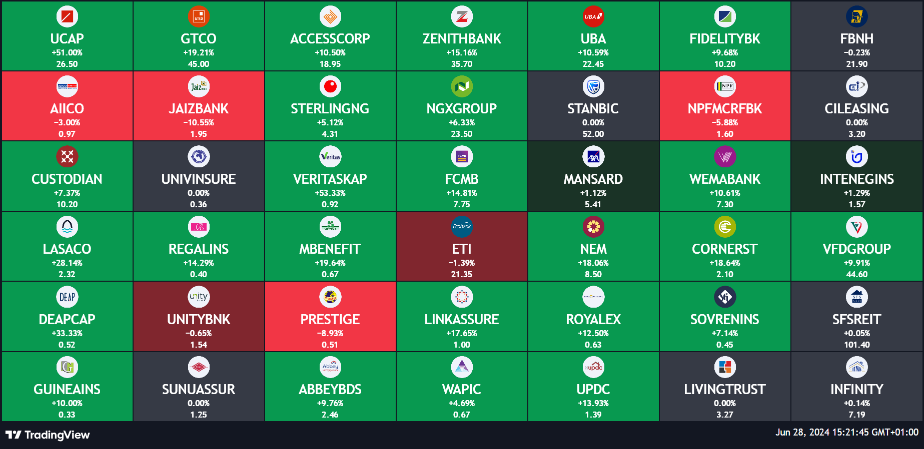 FBNH: We anticipate a minor selloff in the first week of July based on our technical readings, followed by an increase in buying activities from mid-July onwards. Additionally, we have revised our target price down from NGN30.24 per share to NGN28.20 per share for 2024, reflecting our current outlook.